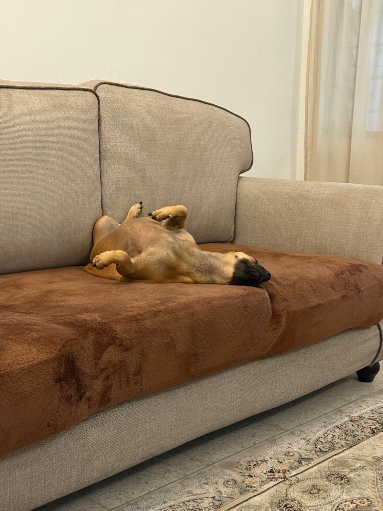 My favourite thing with Gamora is when we go to a park she loves. She enjoys walking. It’s funny how people greet her and play with her, because she shows her appreciation. I also love taking her to cafes. She loves the attention! I’d be lying if I said I didn’t love just pottering around with her in the garden, throwing the ball for her to catch. I love how she chases after it and catches it so quickly. Maybe my absolute favourite is when she snuggles up to me. In this heat, it’s like having a hot water bottle, which isn’t helpful, but somehow, just feeling the softness of her ears, the roundness of her belly, and the cuddliness of her entire being, melts my heart.